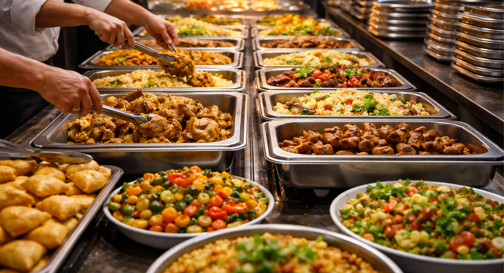 Ramadan restructures the entire rhythm of eating across the UAE. Meals shift to two primary windows, Iftar at sunset and Suhoor before dawn and food preparation scales up dramatically to meet both. Restaurants launch special set menus, hotels run large Iftar buffets and households cook for extended family gatherings that may or may not arrive in the expected numbers. Every layer of the food system responds to the month by preparing more, because preparing less is understood as a failure of hospitality rather than a practical decision.